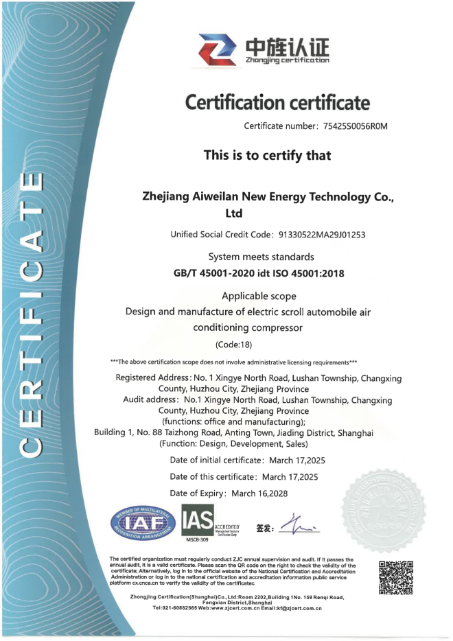 ISO45001证书